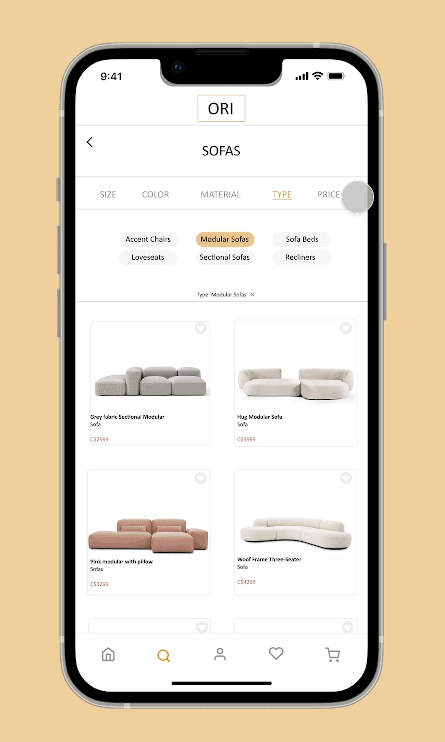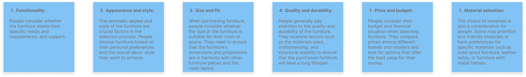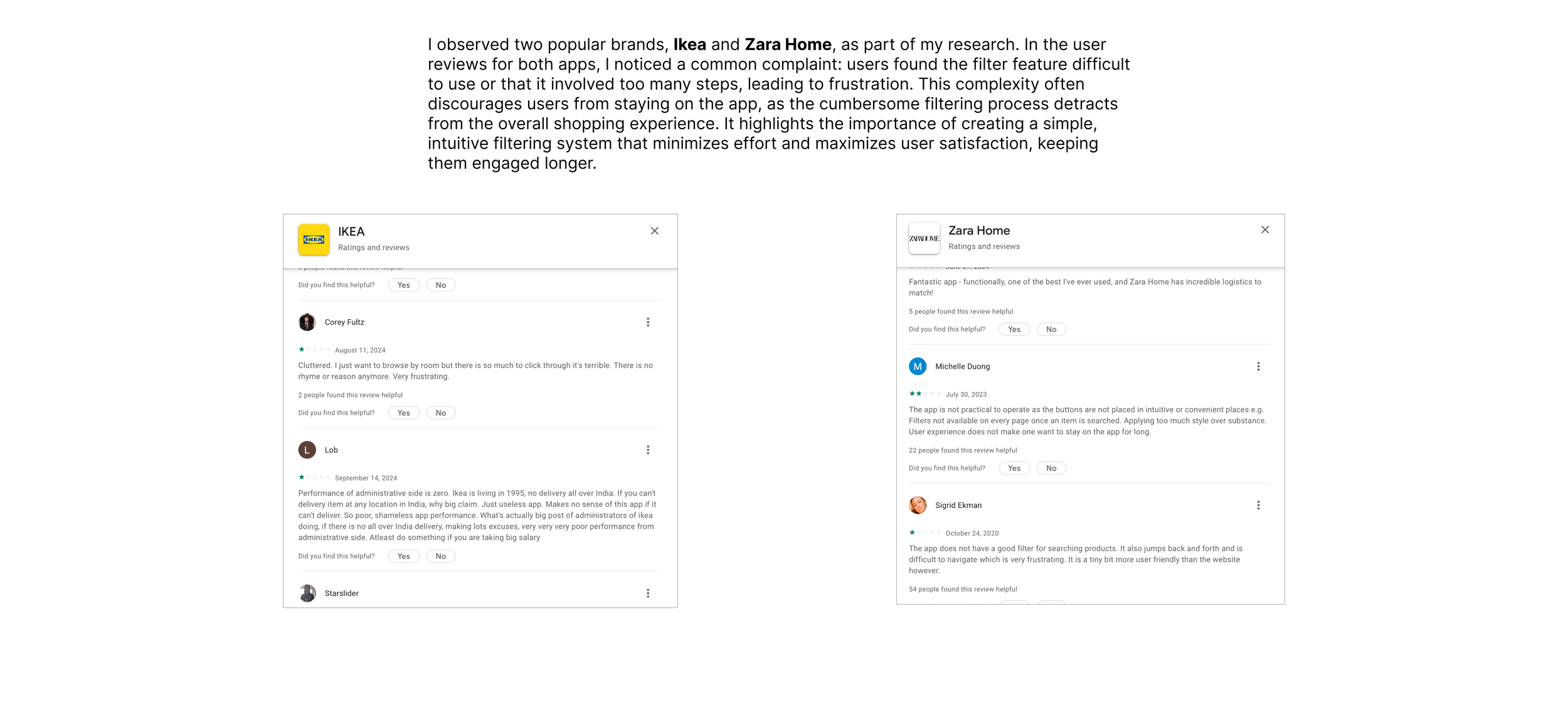 Many existing filter functions fail to directly address the specific pain points that users face when purchasing furniture. An intuitive interactive design can help users easily filter and find their desired products.